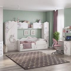 В набор также входит двустворчатый шкаф с отделением для одежды и двумя выдвижными ящиками в нижней части. Шкаф дополняет навесная полка с закрытыми отделениями, в которой удобно разместить учебные пособия или другие вещи.