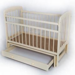Её можно использовать как качалку и в последствии оснастить колесиками. У этой кроватки есть ящик для хранения.