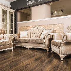 Комплект мягкой мебели Эсмеральда с декором орех+золото, шикарный и удобный, респктабельный и богатый по своему дизайну, надежный и удобный по наполнению. Поступает в разобранном виде.