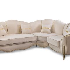 Комплект состоит из прямого и углового диванов, кресла для отдыха и пуфа.