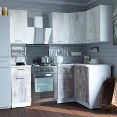 2. Фасады в цвете Цемент светлый обрамлены цветной кромкой Дуб золотой в цвет корпуса.