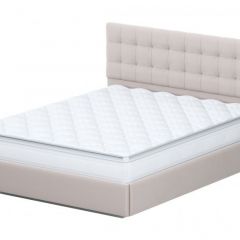 Кровать двойная №2 (универсальная 1.6х2.0) Серия 2 + основание с ПМ (Белый/Бежевый ткань/Квадро Бежевый ткань)