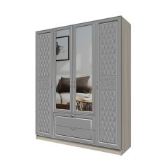 Прованс-2 Шкаф 4-х дверный с 2 зеркалами (Бежевый/Текстура белая платиной золото)
